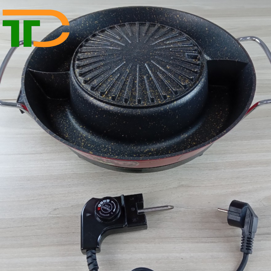 Nồi lẩu điện kết hợp 02 trong 01 vừa nấu lẩu vừa nướng thiết kế gồm 02 ngăn nấu lẩu và 01 khay nướng bên trên, sử dụng nấu lẩu ở dưới và bên trên kết hợp nướng rất thuận tiện cho mọi gia đình trong các buổi sum họp, liên hoan, công sở, nhà hàng…