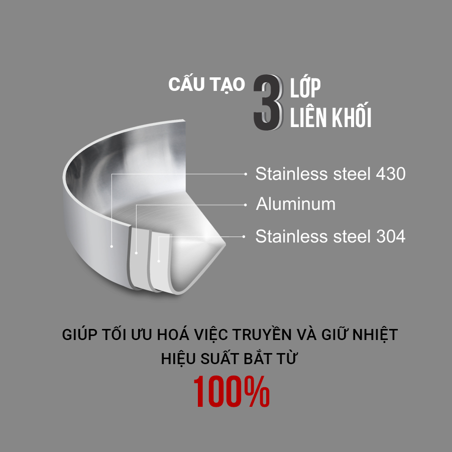Sự kết hợp hoàn hảo của 3 lớp kim loại cho hiệu suất nấu nướng được tối ưu một cách hiệu quả: